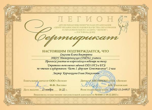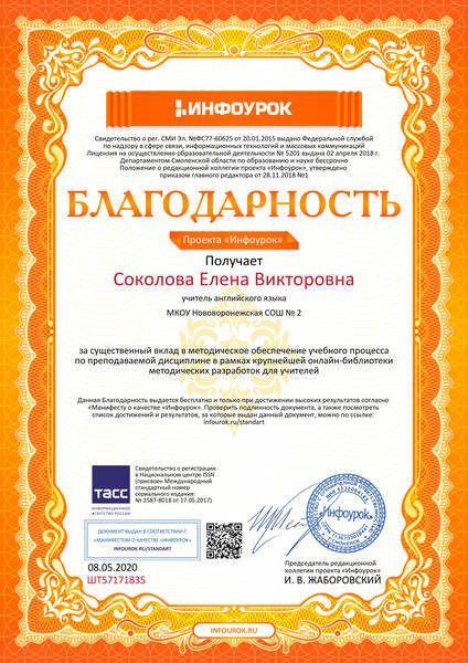 Курс углубленный английский язык для школьников с 2 по 9 класс. Подготовка к ОГЭ и ЕГЭ. Онлайн-уроки проводит преподаватель английского языка высшей категории со стажем работы 30 лет Соколова Елена Викторовна. Закончила Воронежский государственный педагогический университет в 1996 году (диплом с отличием). Имеет множество наград, дипломов и сертификатов, связанных с профессиональной деятельностью.